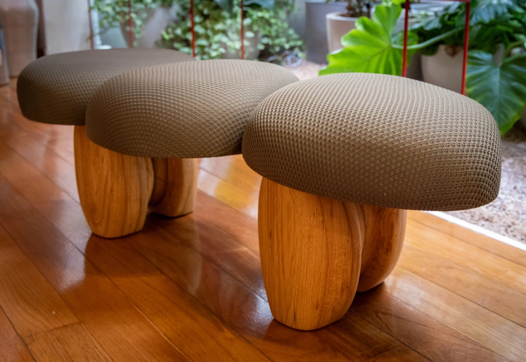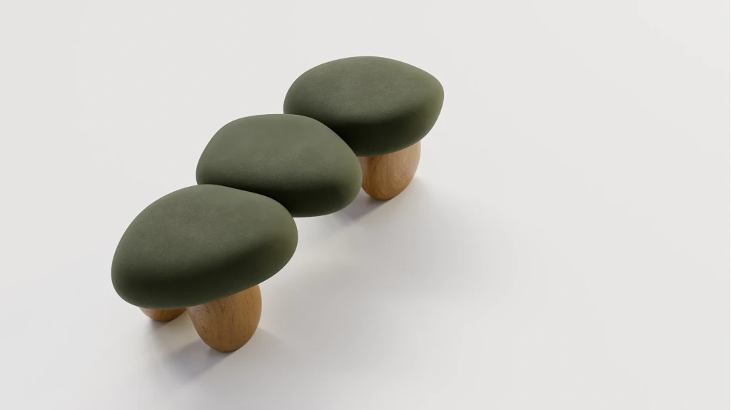 Lançamento do Fuori Saloni del Mobile de Milão 2025 o Banco Pedras é uma peça de design que captura a essência das formas orgânicas da natureza. Com assentos em formato arredondado e estofados em um tom verde, ele possui uma base em madeira maciça, esculpida a mão para se assemelhar às rochas encontradas em paisagens naturais. A combinação das formas suaves e o equilíbrio visual da madeira e do tecido cria um design minimalista e ao mesmo tempo acolhedor.