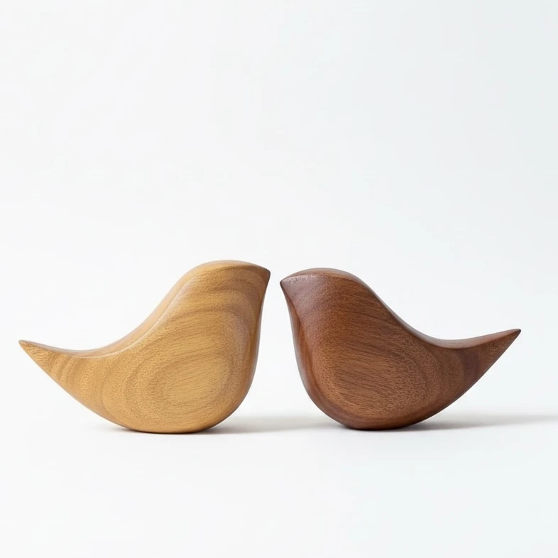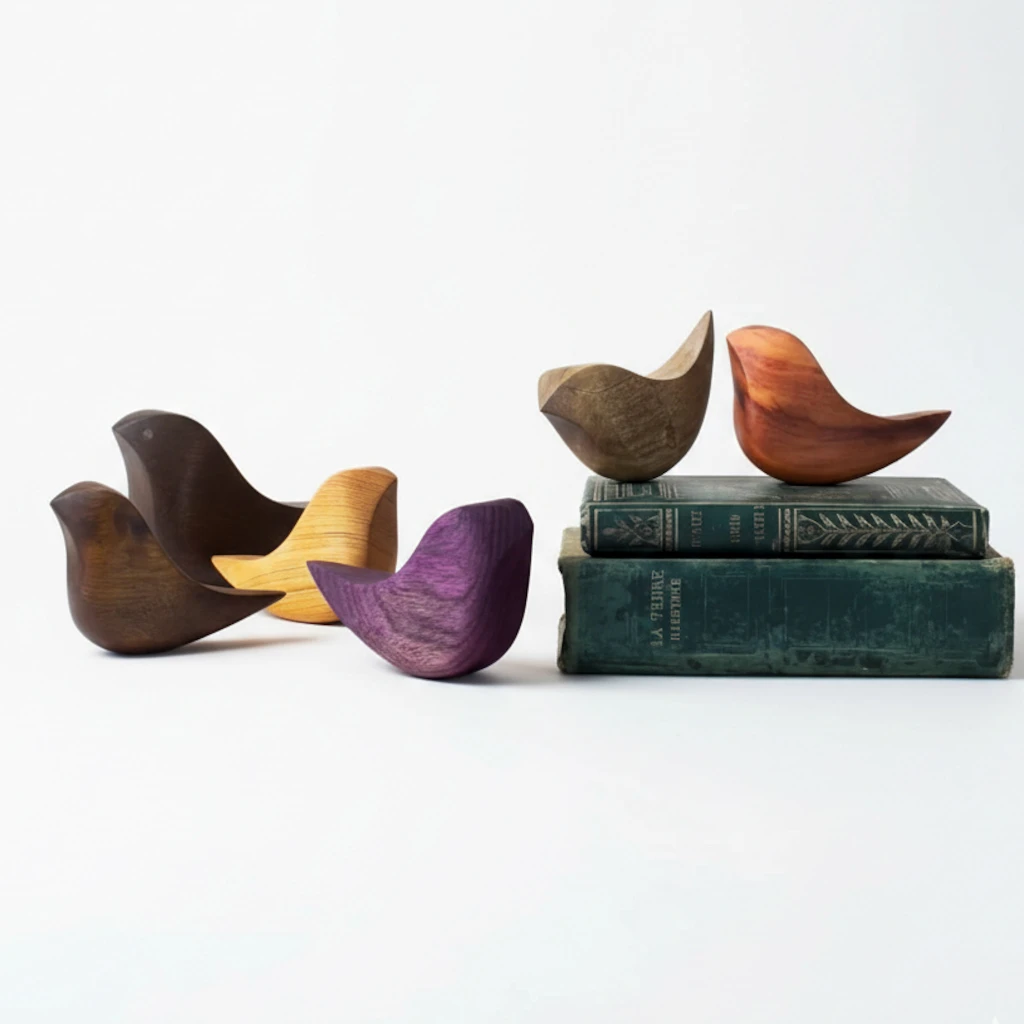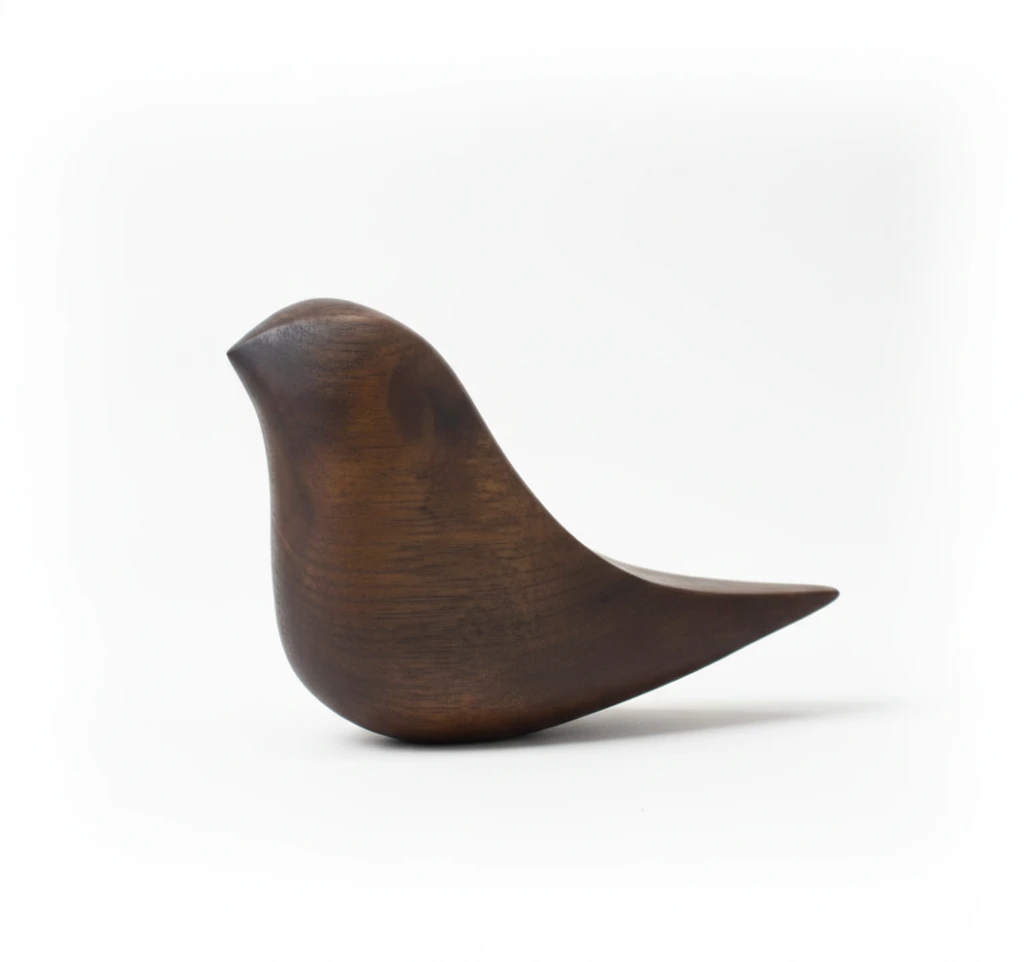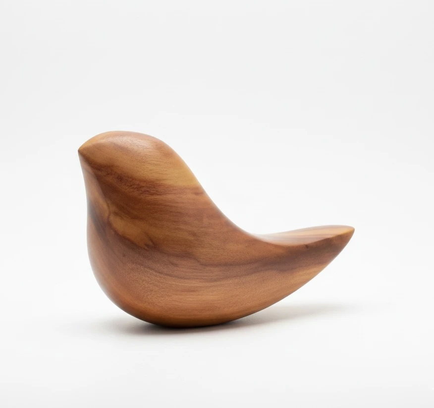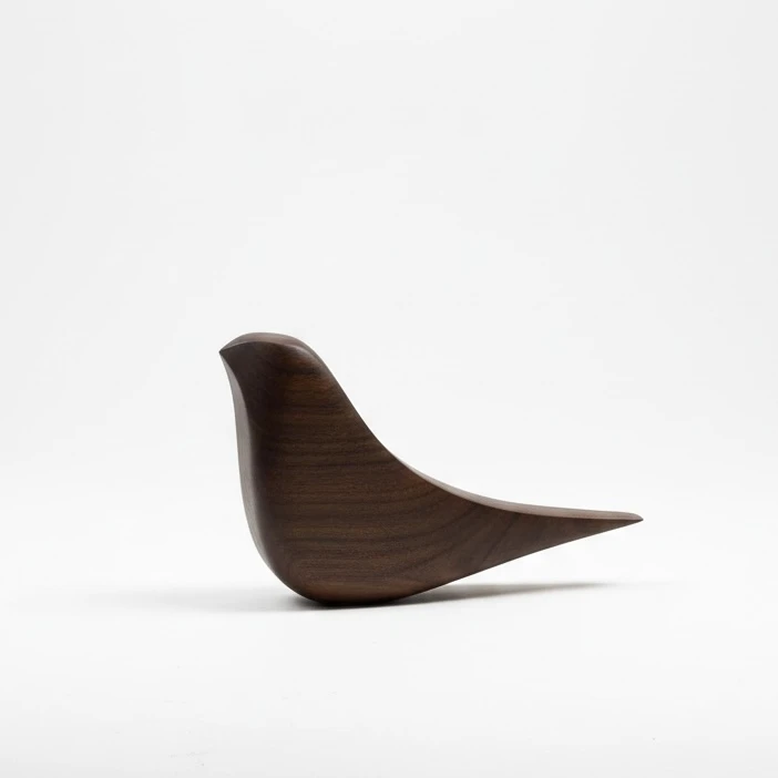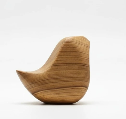 Pássaro decorativo em madeira torneada e esculpida. Produzido em madeiras nobres: imbuia, roxinho, freijó, peroba-rosa, pau-marfim ou maracatiara. Acabamento em óleo mineral e cera orgânica que preserva a textura e aroma naturais da madeira. Cada peça é única devido às características próprias da madeira. Cada pássaro é vendido separadamente.