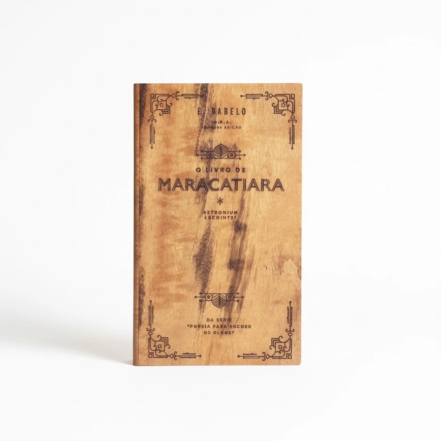 Livro decorativo em madeira maciça com gravação a laser, parte da coleção Xiloteca. Peça escultural produzida artesanalmente em madeiras nobres. Acabamento com óleo mineral e cera orgânica que preserva textura e odor naturais. Cada peça é única devido às características próprias da madeira, que envelhece naturalmente ao longo do tempo.