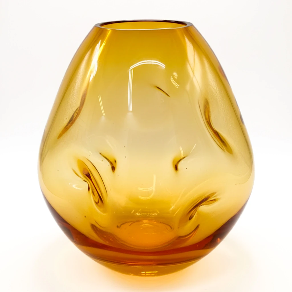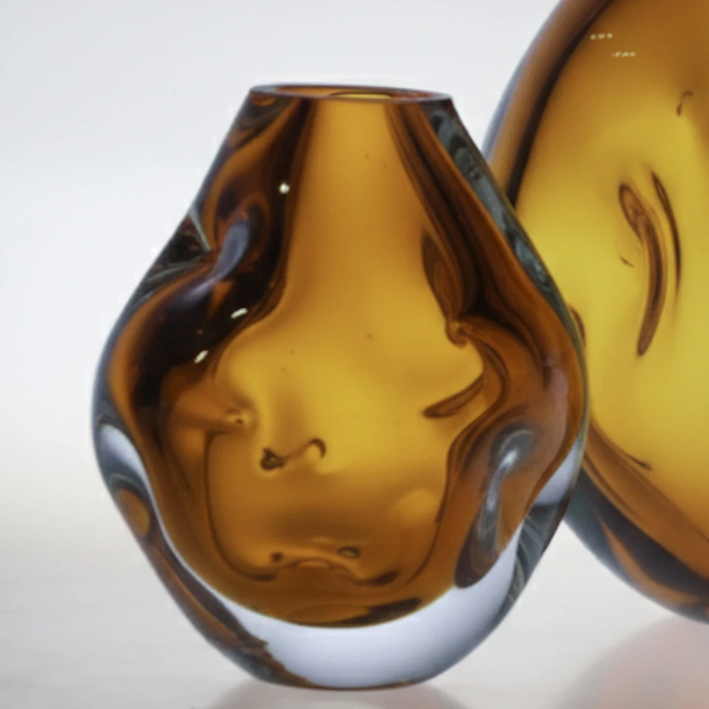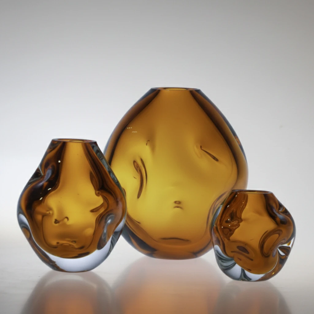 Cada exemplar é único, produzido sem o uso de moldes em um processo completamente artesanal. Pequenas variações de formato e tamanho são características inerentes à técnica de sopro livre, tornando cada peça uma obra singular. Disponível em três tamanhos: pequeno (14 x 14 x 14 cm, 1 kg), médio (18 x 16 x 16 cm, 1,5 kg) e grande (26 x 24 x 24 cm, 4 kg).