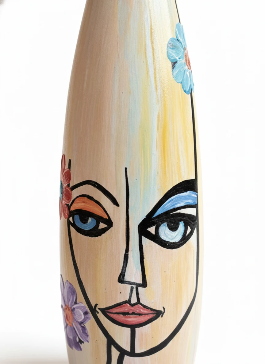 Vaso em cerâmica branca pintado à mão. Peça artística única, cada vaso possui variações de pintura.